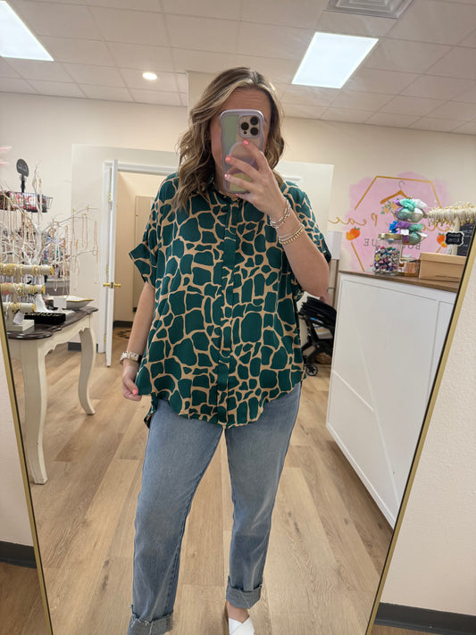 Umgee Animal Print Button Down Collared Shirt