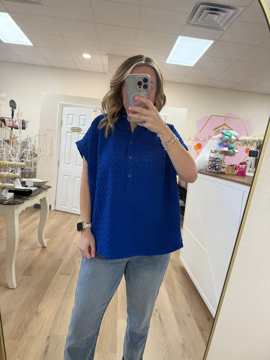 Umgee Textured Jacquard Half Button Down Boxy Cut Top